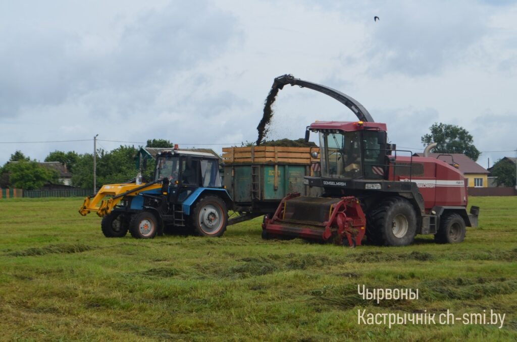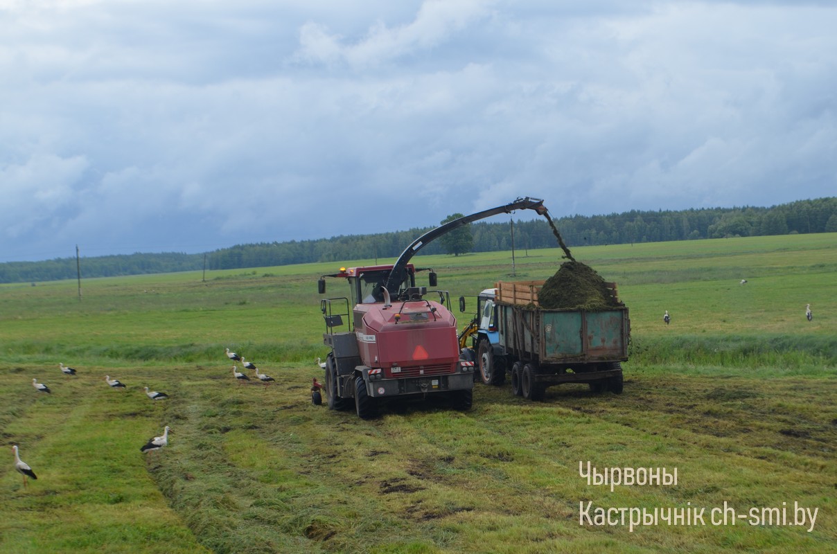 Ввиду практически ежедневных дождей, которые в целом сдерживают темпы проведения первого укоса, готовить сено, как традиционно главный компонент в данный период «зеленой жатвы», очень сложно, а в ряде мест – и невозможно из-за переувлажнения травяных угодий, в особенности, на низких торфяниках. Поэтому основная работа сейчас сосредоточена на специализированных траншеях, где идет закладка сенажа (а в некоторых хозяйствах, как, например, в ОАО «Дербин» – и силоса) под потребности будущей зимовки крупного рогатого скота.