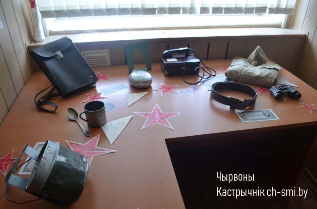 На этой музейной выставке, уютно и компактно разместившейся в приемной Октябрьского районного отдела Следственного комитета Республики Беларусь, экспонируются различные предметы и элементы наглядности – книги, газеты, фотопортреты, вещи фронтового и партизанского обихода и некоторое другое. Все они объединены единой тематикой, имеющей отношение к борьбе советского народа против вражеских оккупантов в годы Великой Отечественной войны. Сама же выставка приурочена к славной дате, которая широко будет отмечаться в нашей республике совсем скоро, точнее, 3 июля, – 80-летию освобождения Беларуси от немецко-фашистских захватчиков. Экспозиции по своему содержанию не обходят стороной и другое памятное событие: также 80 лет назад, 27 июня 1944 года, наш Октябрьский район был полностью очищен от иноземных завоевателей, и здесь началась долгожданная мирная жизнь.