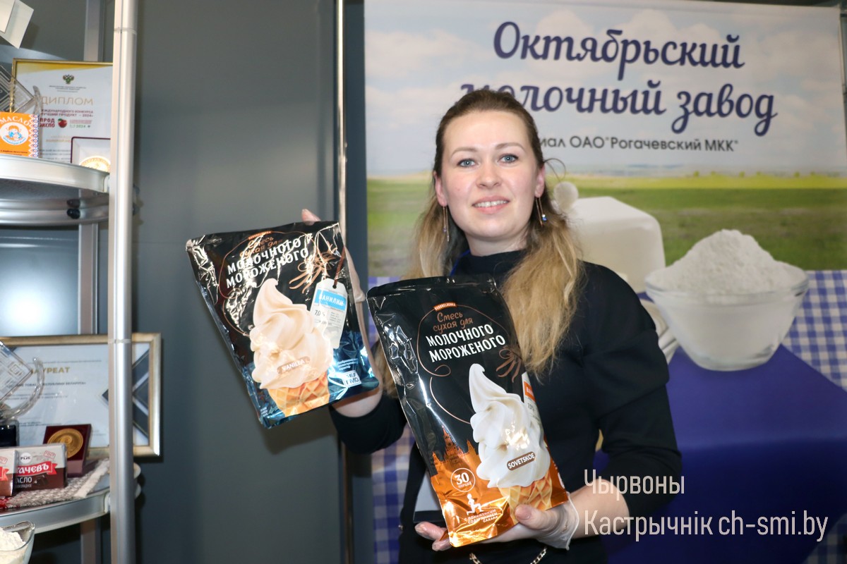 За прошлый год объем по выпуску сухой смесь составил около четырех тонн, уточнила начальник цеха Надежда Артюшко. В перспективе нарастить объемы, поскольку сбыт продукции гарантирован. Сухая молочная смесь для мороженого востребована и у местных жителей, и у горожан. Она отправляется в торговый дом «Рогачев», а затем по магазинам области. Кстати, попробовать октябрьское мороженое можно не только летом. Круглый год оно продается в сухом виде в двух торговых павильонах «Рогачевский молочноконсервный комбинат» от молочного завода, в готовом виде есть в ассортименте на автозаправочных станциях в Гомельской области, где установлены автоматы для изготовления мороженого.