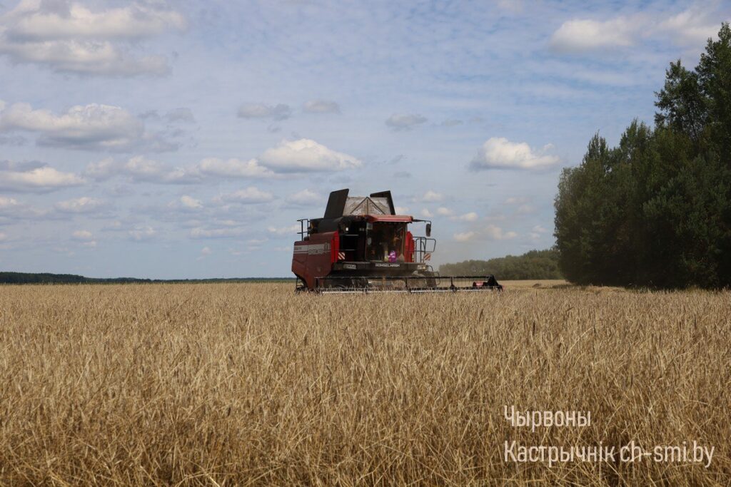 Сразу четыре зерноуборочных комбайна убирали рожь на полях в окрестностях деревни Дербин. Как рассказал директор хозяйства Сергей Якуш, жатва идет хорошими темпами. Зерноуборочные комбайны справляются с поставленными задачами, при благоприятных погодных условиях урожай будет собран в необходимые сроки.