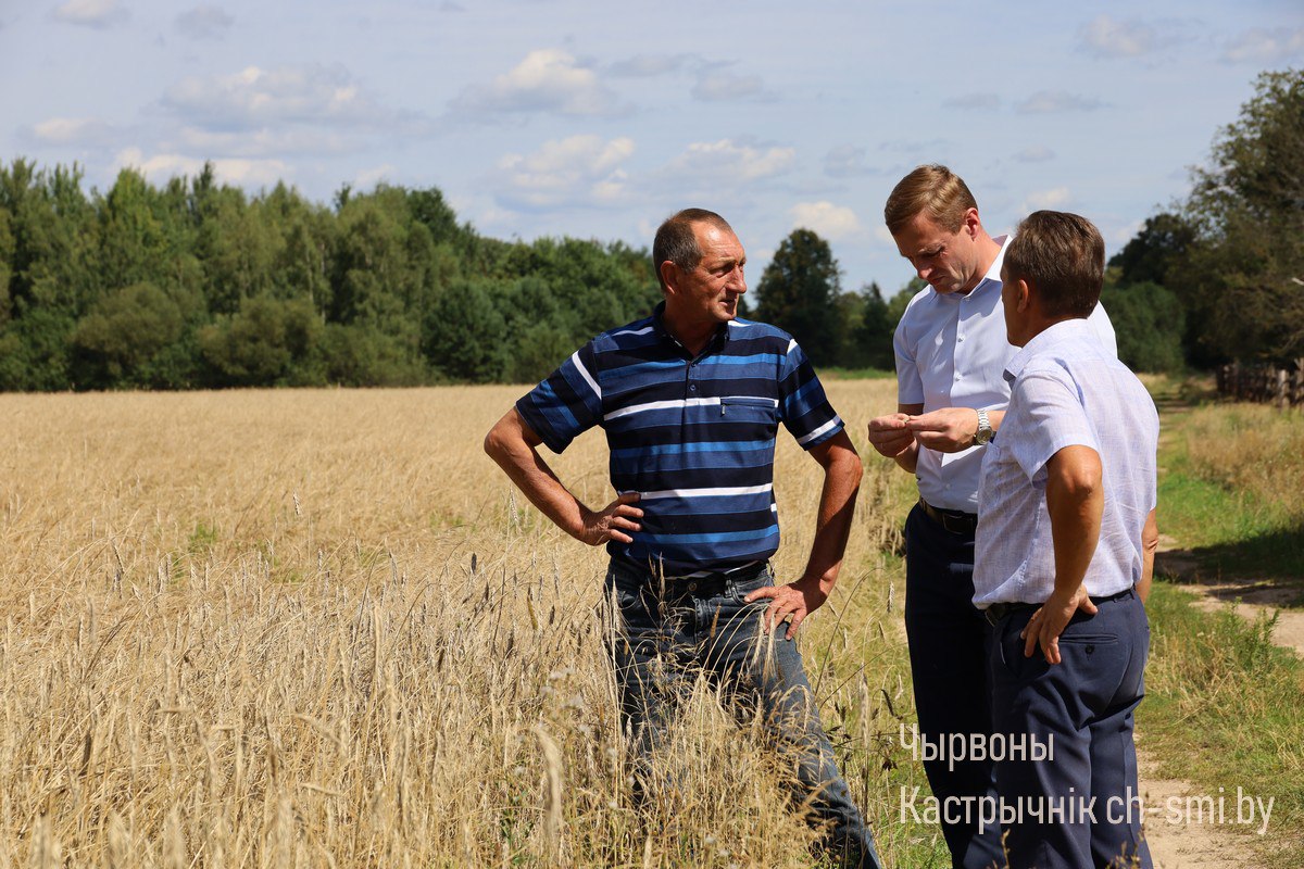 Урожай-2025. Сегодня заместитель председателя Октябрьского райисполкома Александр Шульц вместе с председателем Волосовичского сельсовета Анатолием Станиславчиком оценил ход уборочной кампании в ОАО «Дербин».