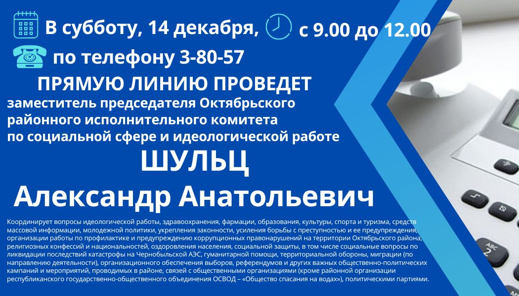 Заместитель председателя Октябрьского райисполкома Александр Шульц проведет прямую линию Прямая линия 12 Дек 2024 960
