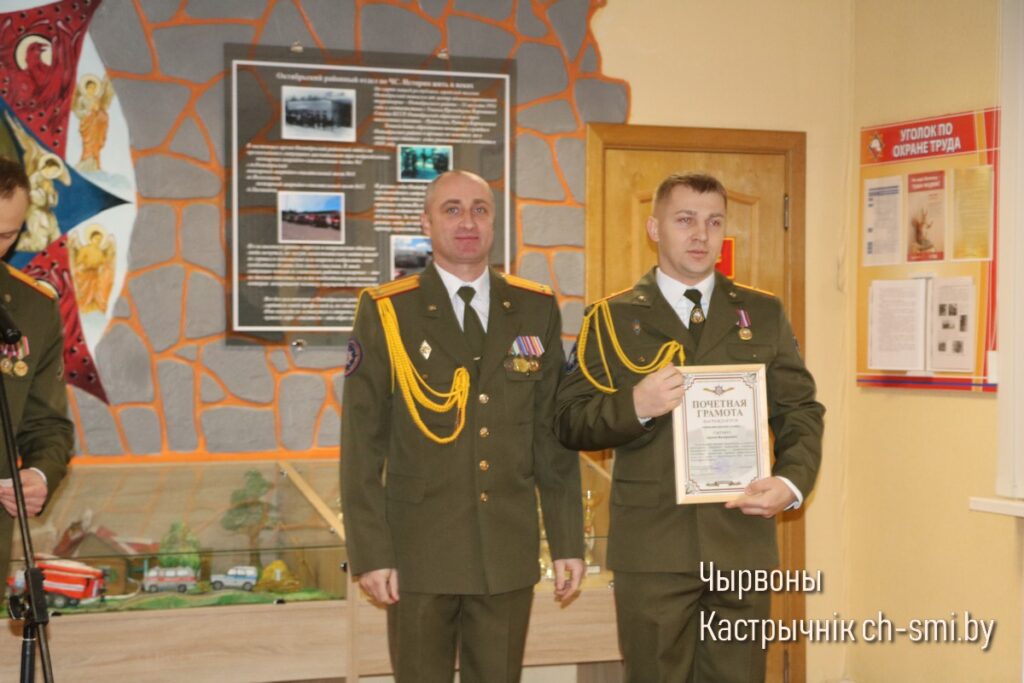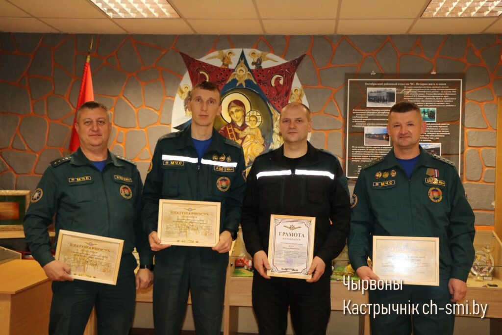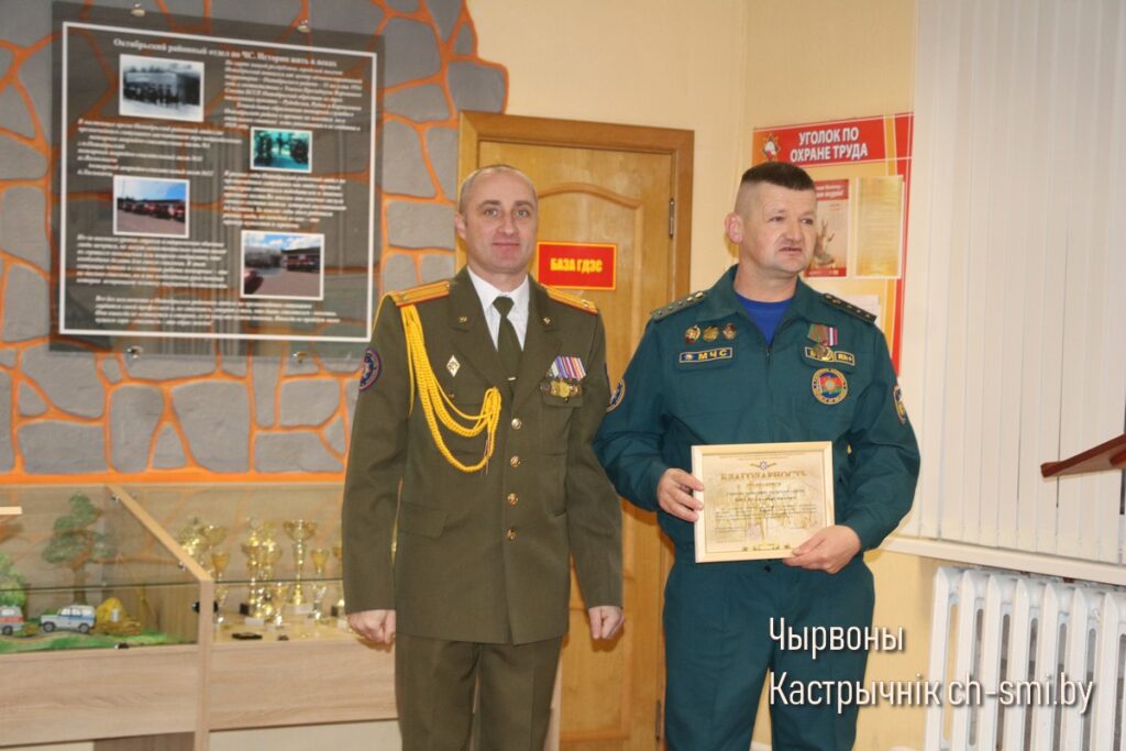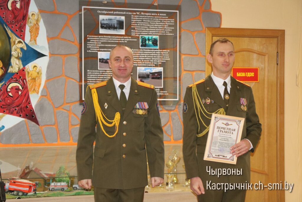 Так, Почетные грамоты Гомельского областного управления Министерства по ЧС Республики Беларусь вручены первому заместителю начальника Октябрьского РОЧС Леониду Терещенко, старшему инженеру сектора организации функционирования государственной системы предупреждения и ликвидации ЧС и гражданской обороны Артему Сытько. Грамотами Гомельского областного управления Министерства по ЧС Республики Беларусь награждены: начальник ПАСП №12 Октябрьского РОЧС Виктор Луцкович, спасатель-пожарный ПАСЧ №1 Николай Шуст.