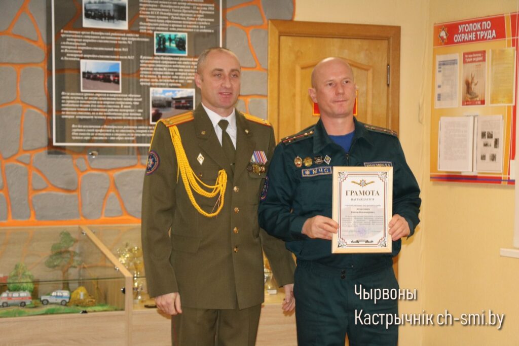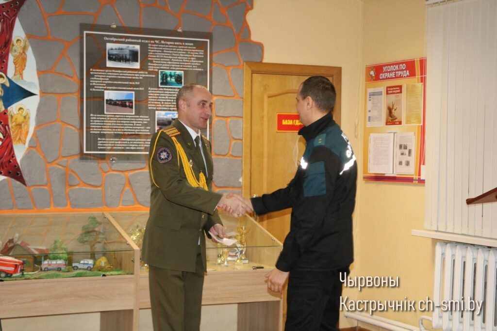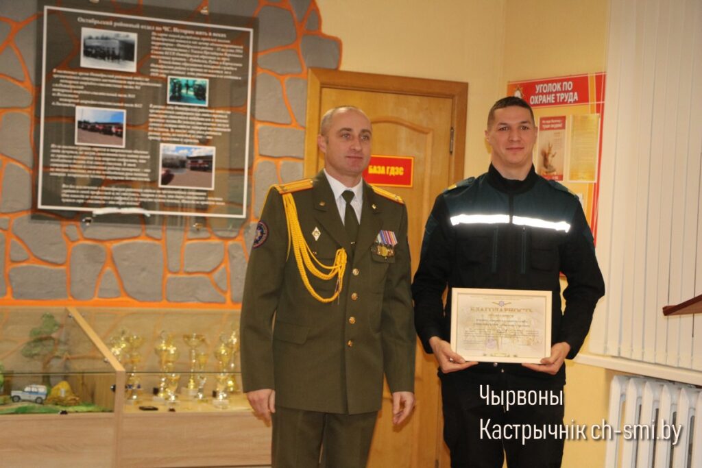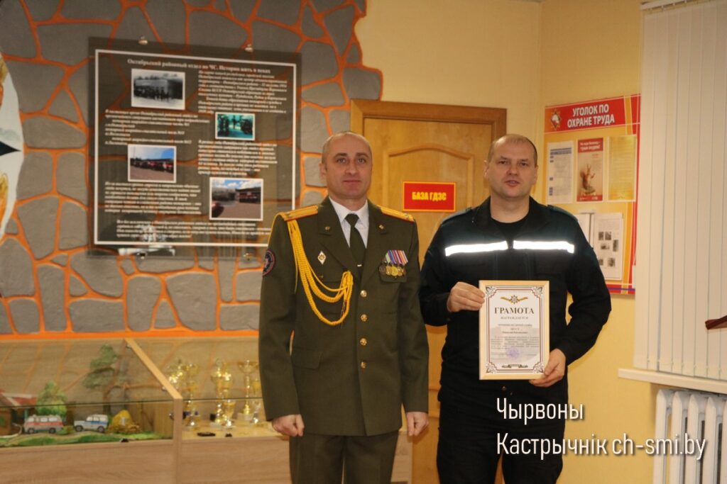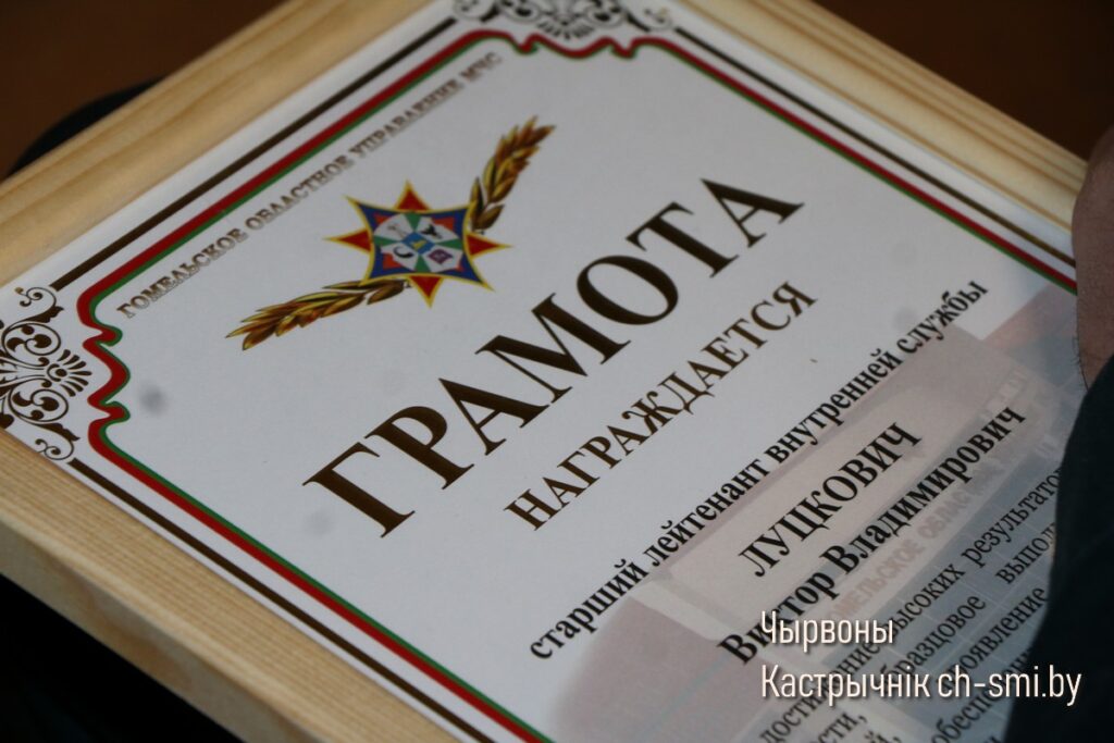 Так, Почетные грамоты Гомельского областного управления Министерства по ЧС Республики Беларусь вручены первому заместителю начальника Октябрьского РОЧС Леониду Терещенко, старшему инженеру сектора организации функционирования государственной системы предупреждения и ликвидации ЧС и гражданской обороны Артему Сытько. Грамотами Гомельского областного управления Министерства по ЧС Республики Беларусь награждены: начальник ПАСП №12 Октябрьского РОЧС Виктор Луцкович, спасатель-пожарный ПАСЧ №1 Николай Шуст.