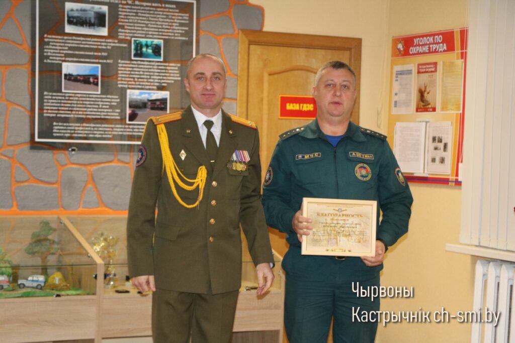 Благодарность Гомельского областного управления Министерства по ЧС Республики Беларусь объявлена: инспектору сектора пропаганды и взаимодействия с общественностью Ольге Вежновец, водителю ПАСЧ №1 Александру Пигулю, старшине группы материально-технического обеспечения и обслуживания Андрею Цагельнику, старшему инструктору-спасателю ПАСП №12 Александру Муравейко, водителю ПАСП №11 Александру Довыдовскому. Нагрудным знаком «Выдатнік» награжден спасатель-пожарный ПАСЧ №1 Александр Подута.