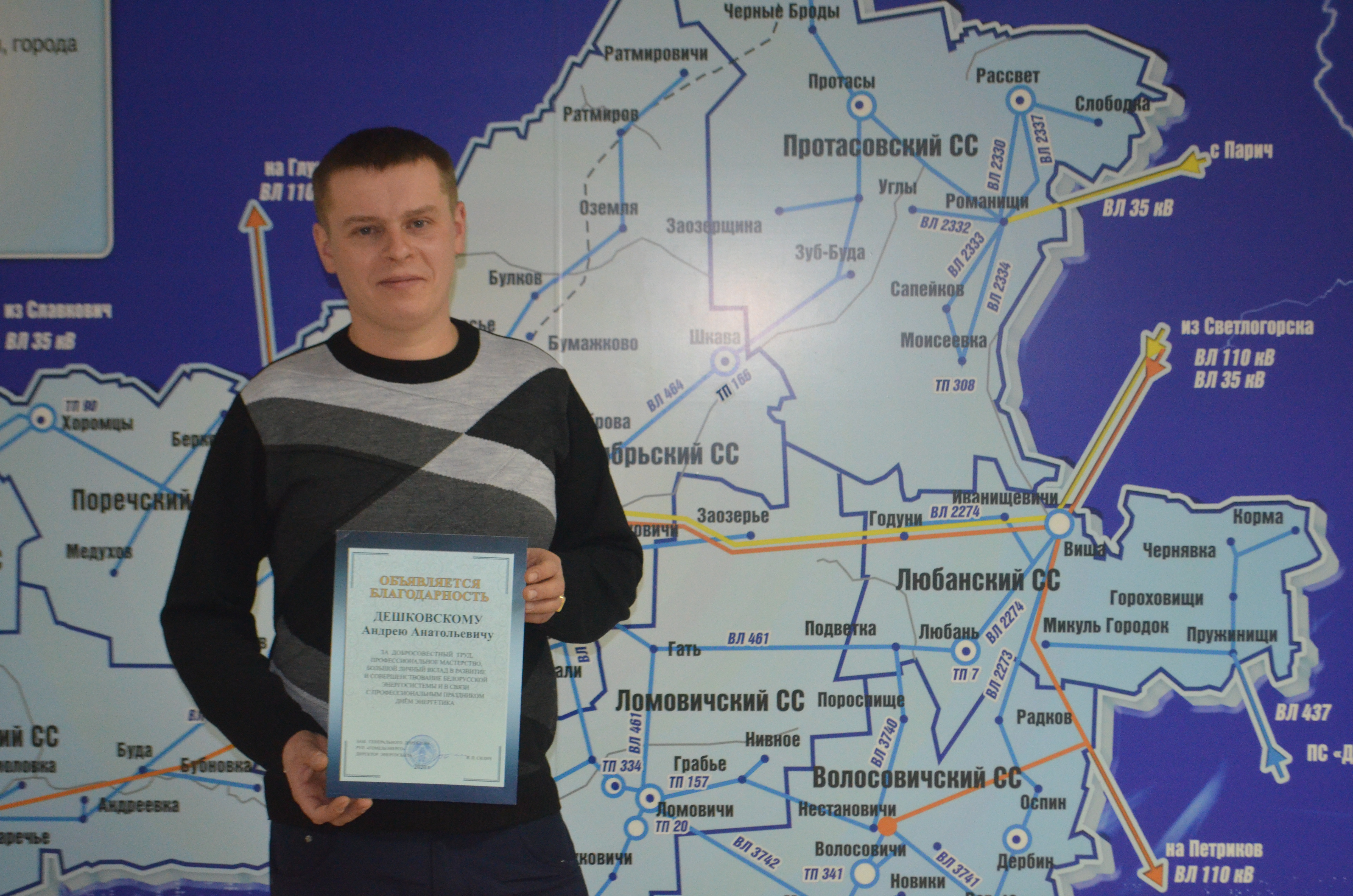 В честь профессионального праздника лучшие работники производственного участка отмечены наградами. Среди них контролер Тамара Петух, водитель Дмитрий Кондратенко. Благодарность РУП «Гомельэнерго» за добросовестный труд,профессиональное мастерство, большой личный вклад в развитие и совершенствование белорусской энергосистемы вручена мастеру по приборам учета Андрею Дешковскому.