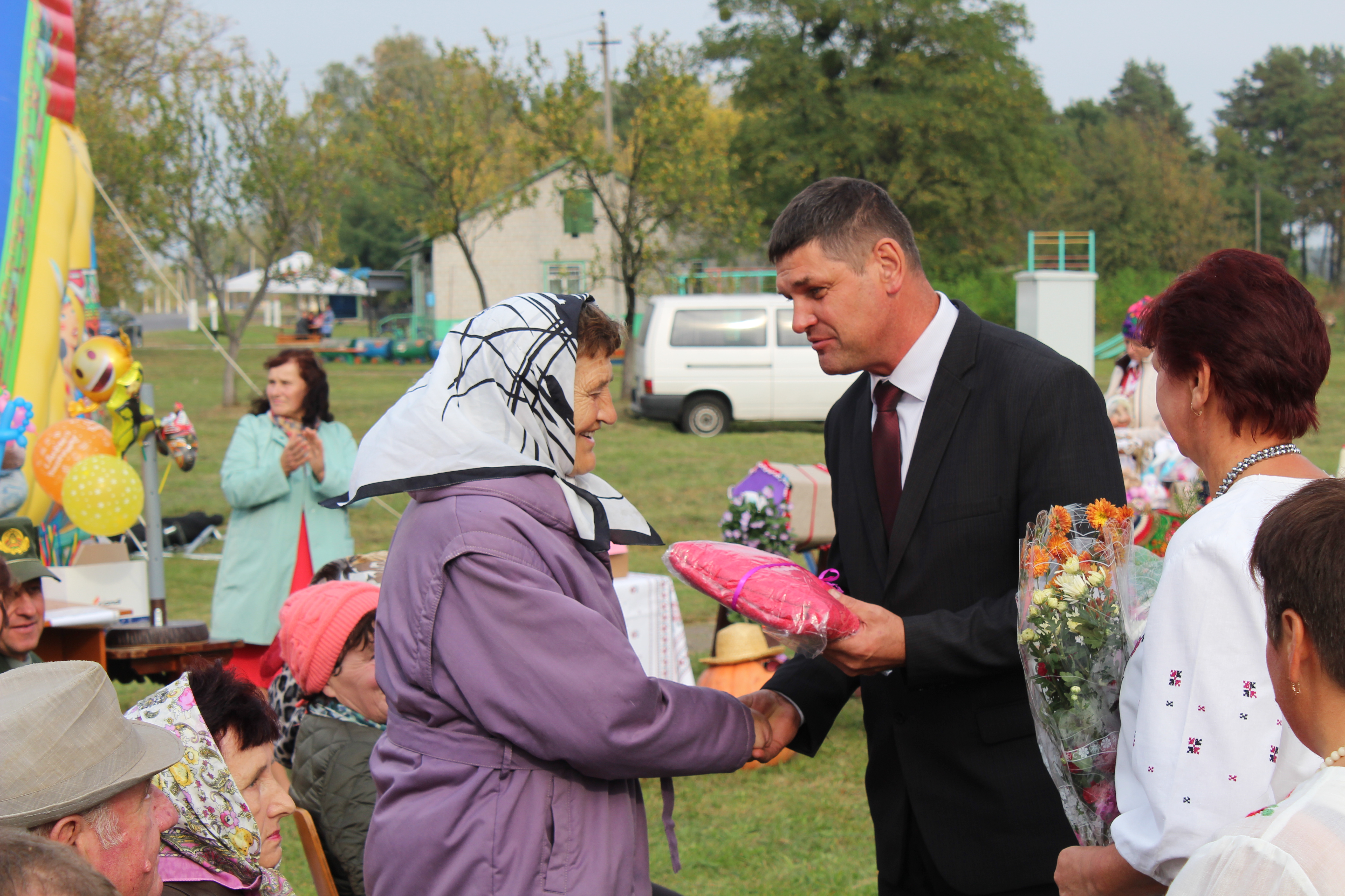 — С такими семьями у нашей деревни есть будущее! — отметили ведущие. И после пригласили на сцену семейные пары, которые отметили 30-летие совместной жизни, это Григорий и Татьяна Гарбачевские, Александр и Елена Горбачевские, Александр и Анна Календаревы. 40 лет вместе прожили Николай и Нина Фещенок, Виктор и Лариса Стельмак, с золотой свадьбой сельчане поздравили Бронислава Станиславовича и Анастасию Ивановну Высоцких. Бриллиантовую свадьбу – 60 лет совместной жизни – отпраздновали в этом году супруги Николай Михайлович и Нина Аркадьевна Варава. Гости праздника поздравили этих замечательных людей аплодисментами и добрыми пожеланиями еще долго жить и радовать друг друга, детей, внуков и правнуков.