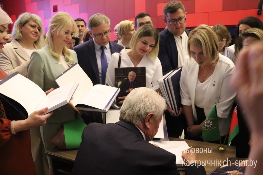 В зрительном зале аншлаг. Пропустить такое событие жители области не могли. Здесь собрались представители разных профессий и возрастов, весь идеологический актив региона, ведь, по большому счету это и их персональная история. С изданием собравшихся со всех регионов Гомельщины знакомил авторский коллектив при участии доктора педагогических наук, профессора Александра Радькова, председателя ОО «Союз писателей Беларуси» Александра Карлюкевича. Модератором мероприятия выступил депутат Палаты представителей Национального собрания Республики Беларусь, белорусский историк, политолог и публицист, кандидат исторических наук, генеральный директор Национальной библиотеки Беларуси Вадим Гигин.