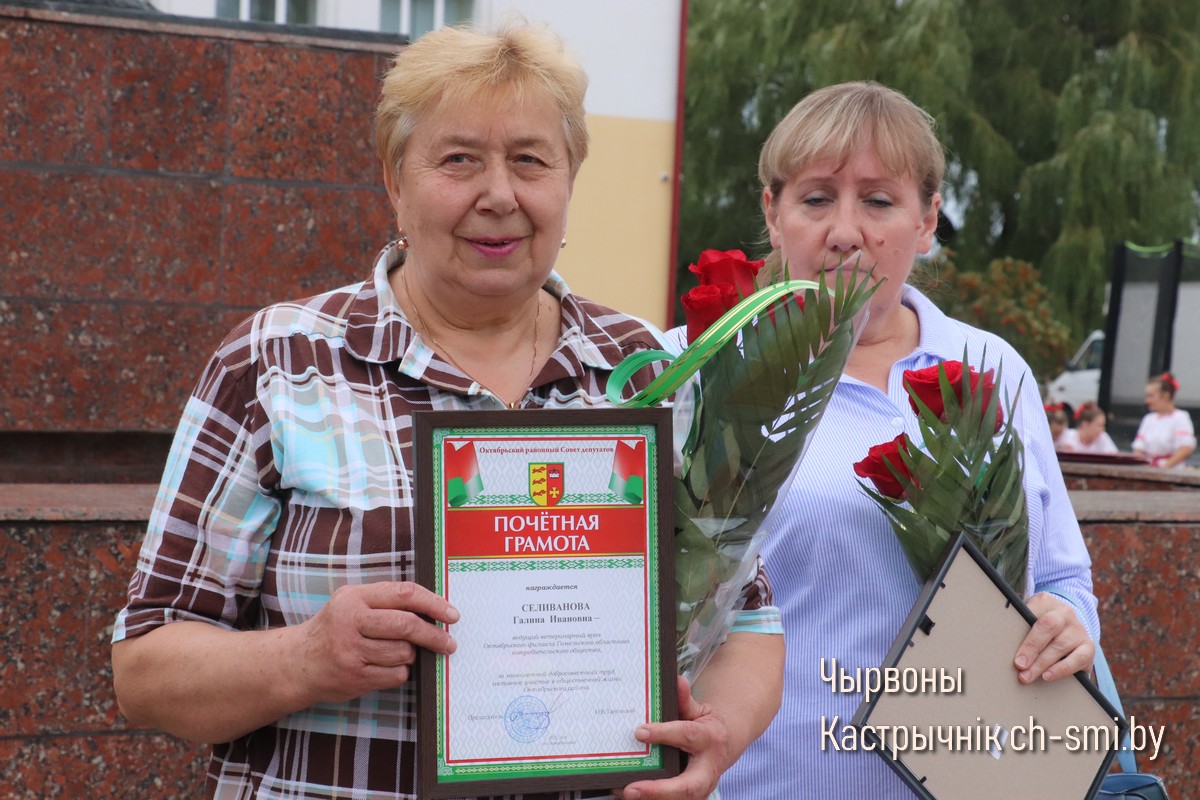 Ветеран труда Галина Ивановна Селивонова, как и вся отрасль потребкооперации, осталась верна своей главной цели — работать во благо людей. Почетные грамоты правления облпотребсоюза, райисполкома, Октябрьского филиала «Гомельоблпотребобщество» — заслуженное подтверждение ее честного, добросовестного и многолетнего труда, высокого профессионализма. Очередную награду – Почетную грамоту облпотребсоюза Галина Селивонова получила накануне профессионального праздника, который работники отрасли отмечают сегодня – 1 июля. Пусть в ее доме живут любовь, уют и благополучие. Галина Ивановна заслужила этого сполна.